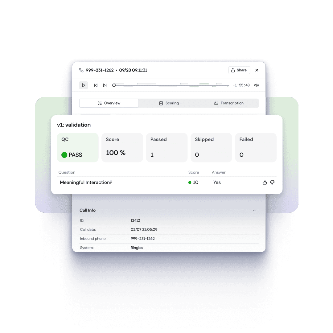 Automatic transcription and semantic scoring. Know exactly which calls converted and why.