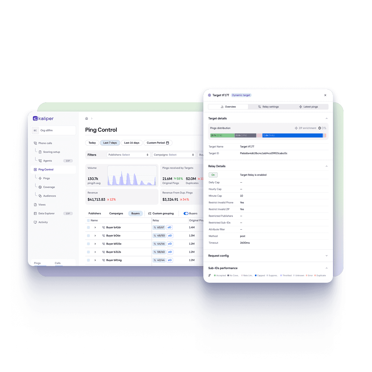 Kaliper sits between your call tracking platform and your buyers, surfacing every routing decision live. Dedupe noise, find rejection patterns, and lower CPA without changing your traffic mix.
